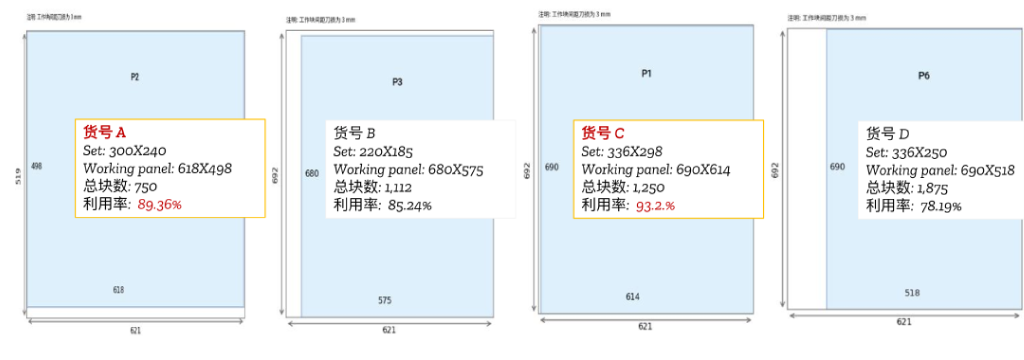 Therefore, to increase the unit price and reduce the laminate cost, we should start from the utilization rate of the net saleable area. It is vital to understand how the net saleable area utilization is calculated and the distinction with the utilization rate in production working panel. High utilization rate in the production does not help your income at all.